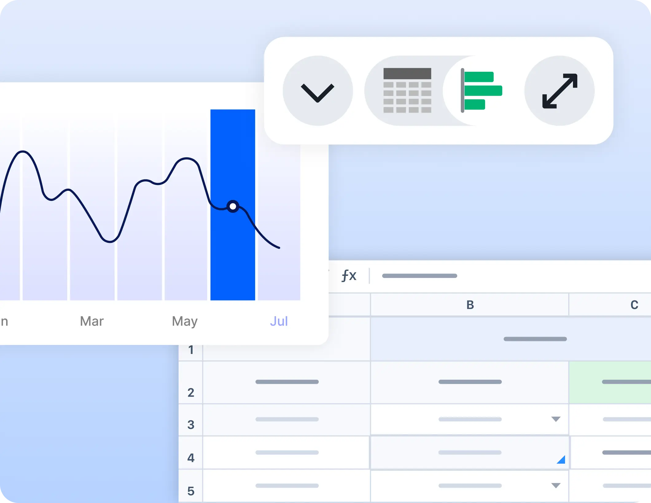 Create visuals instantly from any question, switch between tables and charts, and customize visuals for deeper analysis.